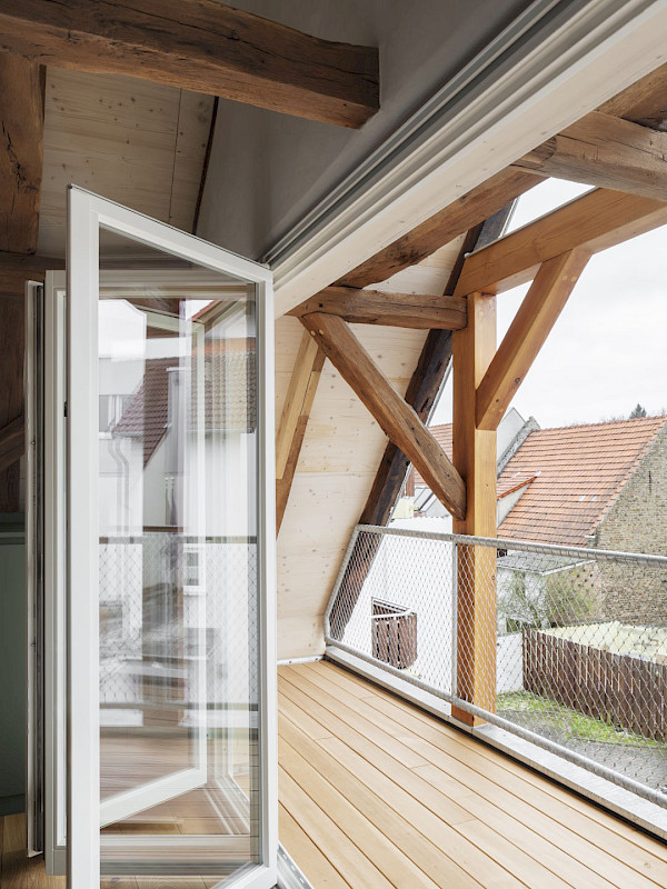 Drei großzügige Gauben und eine Logia hinter dem freigelegten Fachwerk im Süden, geben dem neuen Dachgeschoss eine angemessene Großzügigkeit.